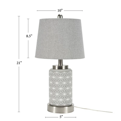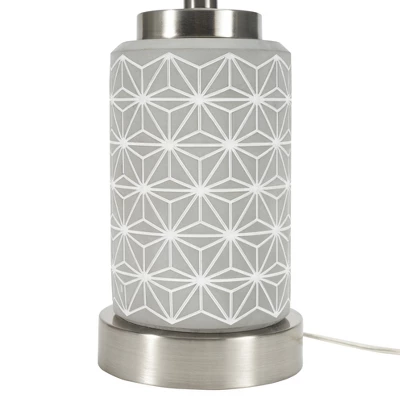 Cozy and classic, this contemporary table lamp brings mid-century modern charm to your favorite space. Made of sturdy concrete with metal accents, it features a geometric design that adds dimension without being overpowering. Topped with a grey, herringbone patterned drum shade that diffuses a cool, ambient glow.