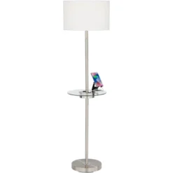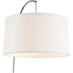 Get contemporary with this beautiful modern table lamp design. The sleek droplet body is impressive with a brushed nickel finish and fluid lines. The striking white cylinder shade looks crisp and clean and contributes to the vertical interest of this updated design.