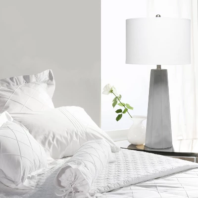 Standing tall at 30.5″, this lamp is sure to make a statement in any room in your home! The gray concrete base is multifaceted with clean lines and is accented with brushed nickel touches and a white fabric drum shade. Perfect for living room, bedroom, office, or anywhere you need to add a touch of industrial style!
