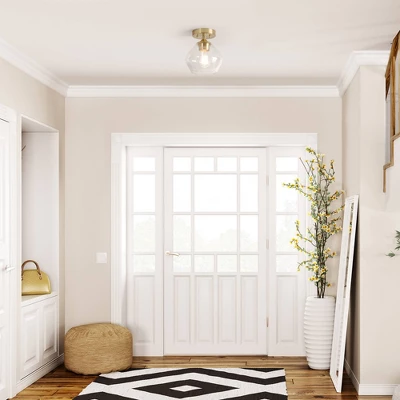 - GRANDMILLENNIAL: the matte brass color and shapely clear glass shade of the Harrow Semi-Flush Mount come together to create a feeling of nostalgia that sits in the pocket of grandmillennial design