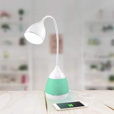 Create a healthier workspace with the OttLite Mood LED Desk Lamp with Color Changing Base. OttLite’s exclusive ClearSun® LED technology reduces eyestrain by up to 51% creating a more comfortable place for you to work, study, read and more! Plus, the fun color changing base glows in the color of your choice so you can set it for whatever mood you’re in. Or let it cycle continuously through the entire 256-color spectrum! With three brightness settings and a flexible neck, you can position the light wherever you need it. And, the convenient 5V, 2.1A USB port fully charges all your devices including phones and tablets.